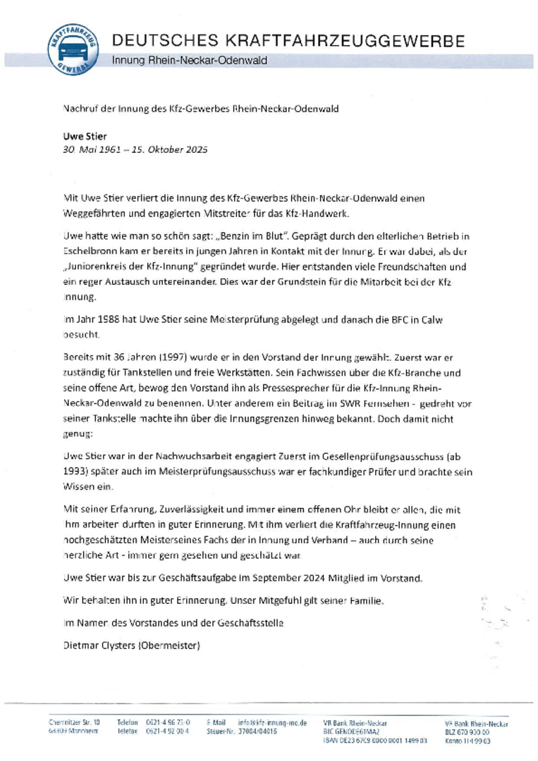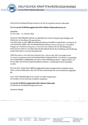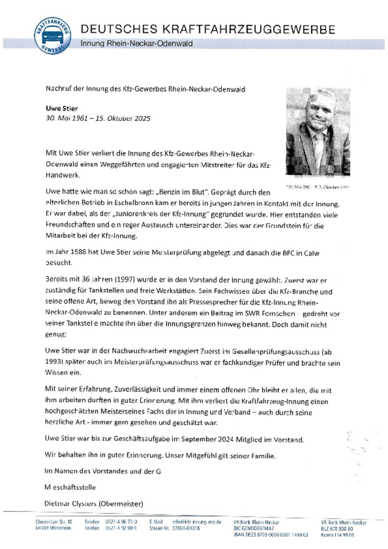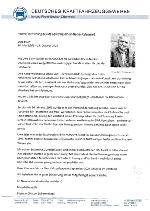 Aktuelles ausl der Kfz-Innung Rhein-Neckar-Odenwald. (Für Text bitte das Bild anklicken).